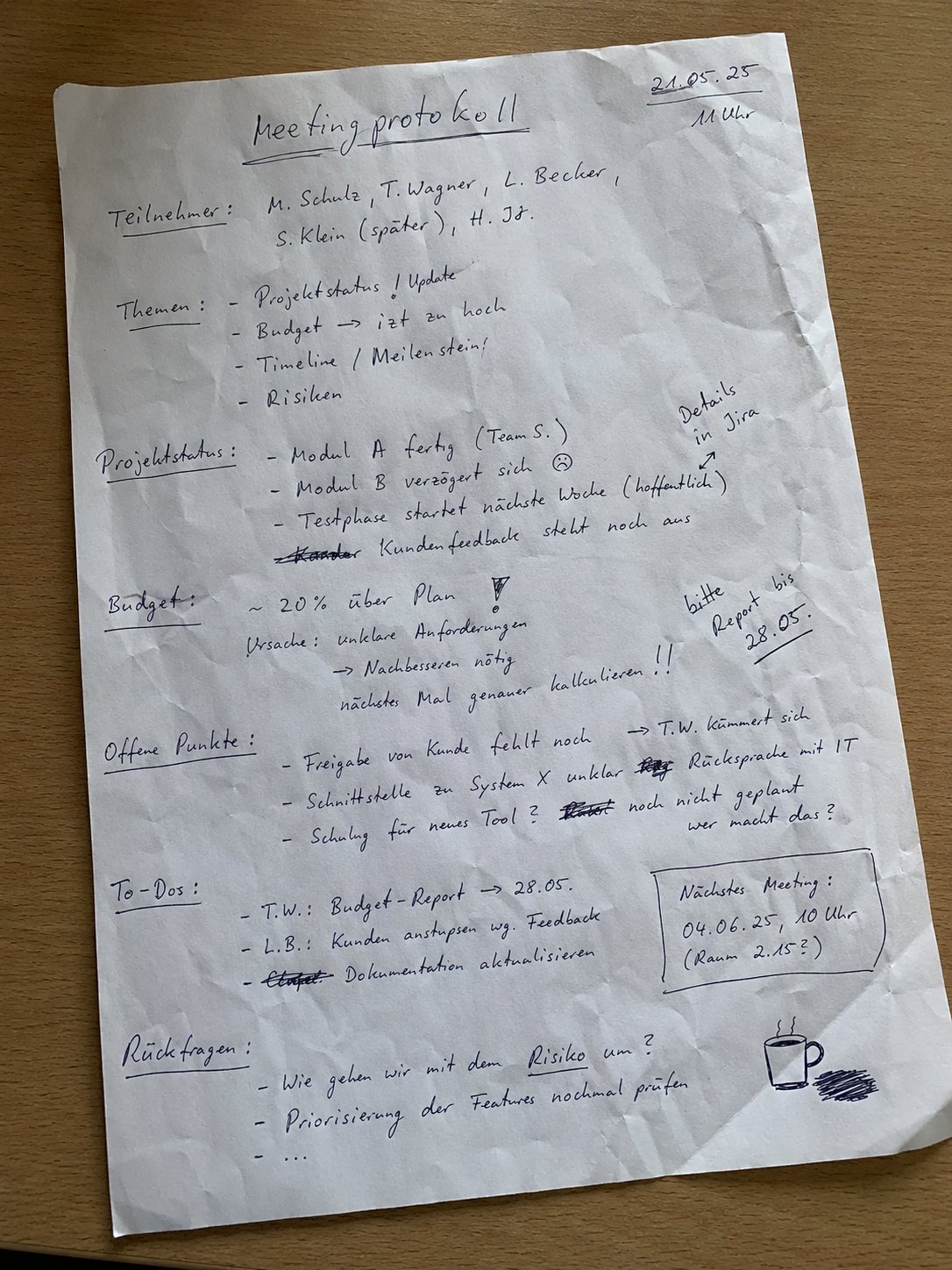 Term coverage 79%19/24 matchedmissing: Content-Strategie, Buzzword-Bingo, Last-Minute-Meeting, LinkedIn-Post, Weltag der Büroklammer